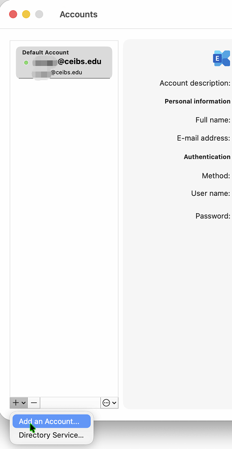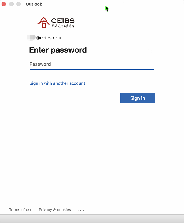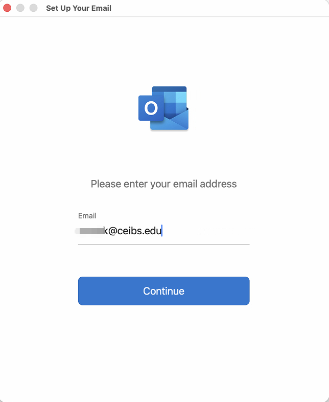 - Add a new account in Outlook for Mac. (Please go to Step 2, enter CEIBS M365 email address)