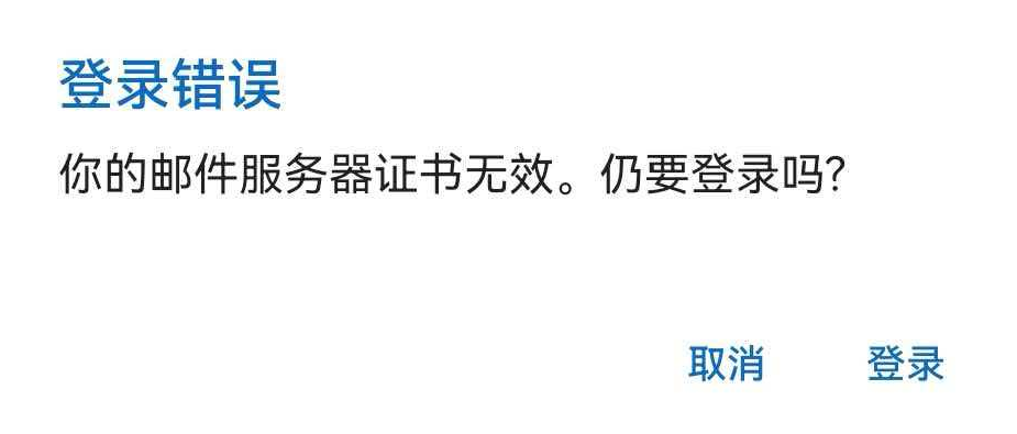 - 如提示 登录错误,你的邮件服务器证书无效,仍要登录吗?选择 登录。