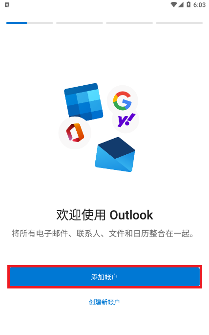 首次设置 Outlook for Android(软件中从未添加过电子邮件帐户)