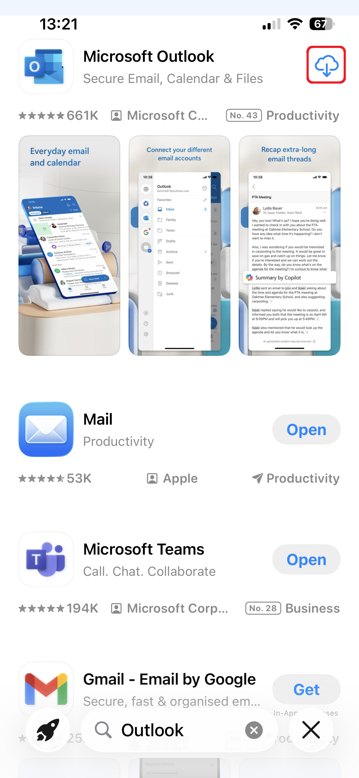 1.Search for Outlook in the mobile App Market and download and install it.