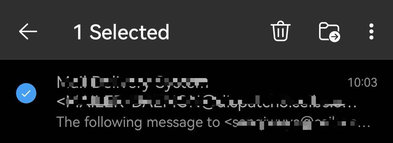 - In any Email folder, select and long-press the message, then tap the three-dots menu button at the top.
