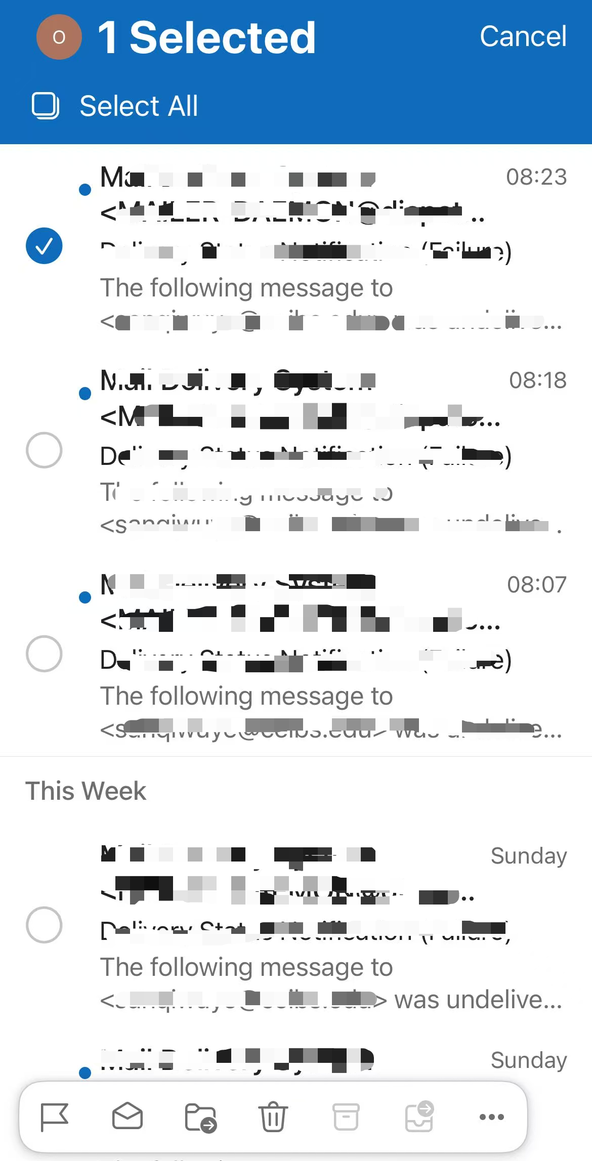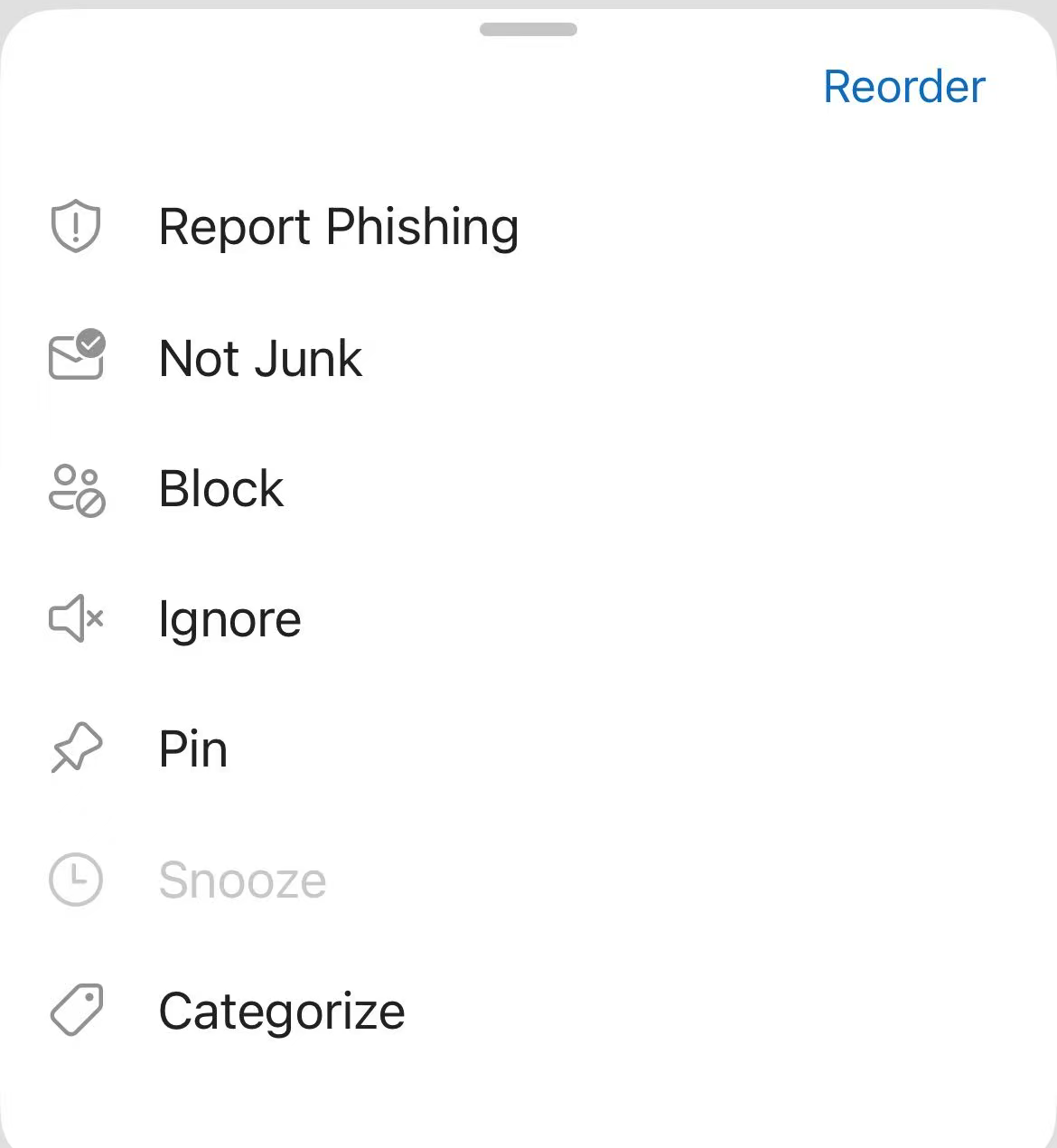 - In any Email folder, select and long-press the message, then tap the three-dots menu button at the bottom.