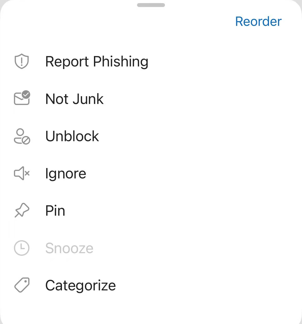- In the Junk Email folder, select and long-press the message, then tap the three-dots menu button at the bottom.