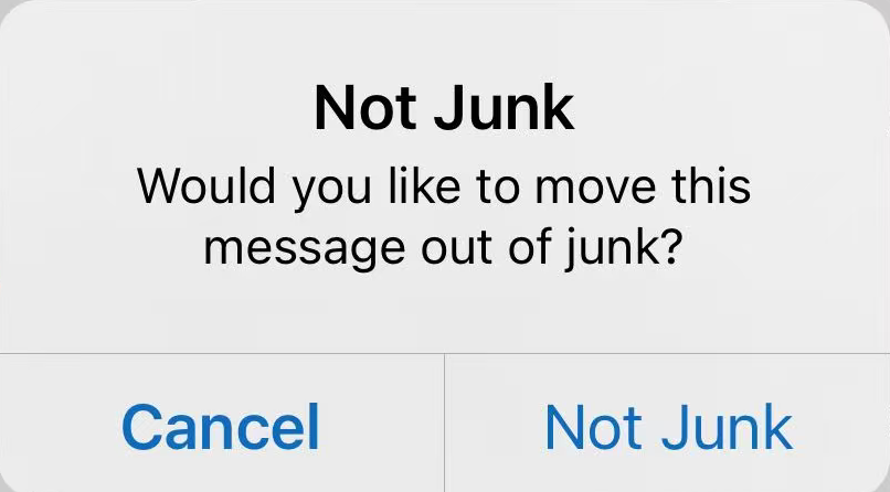 - In the pop-up window, tap Not Junk. The message will be moved back to the Inbox folder.