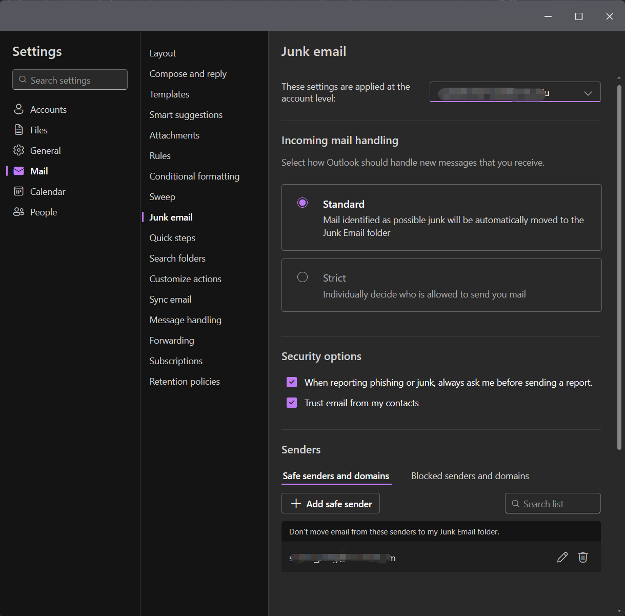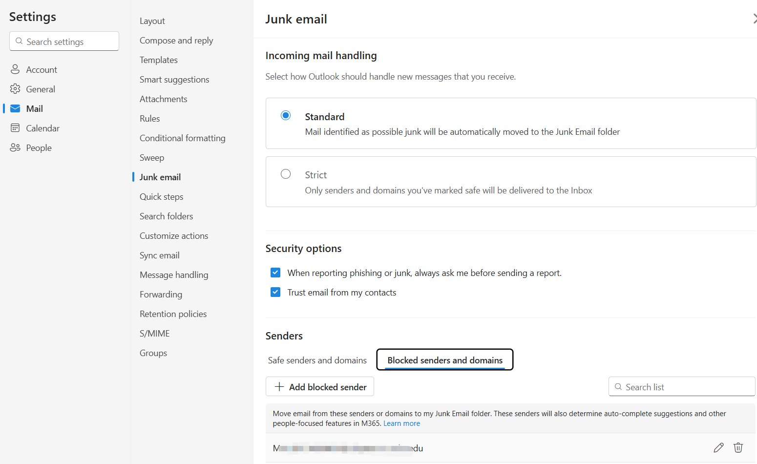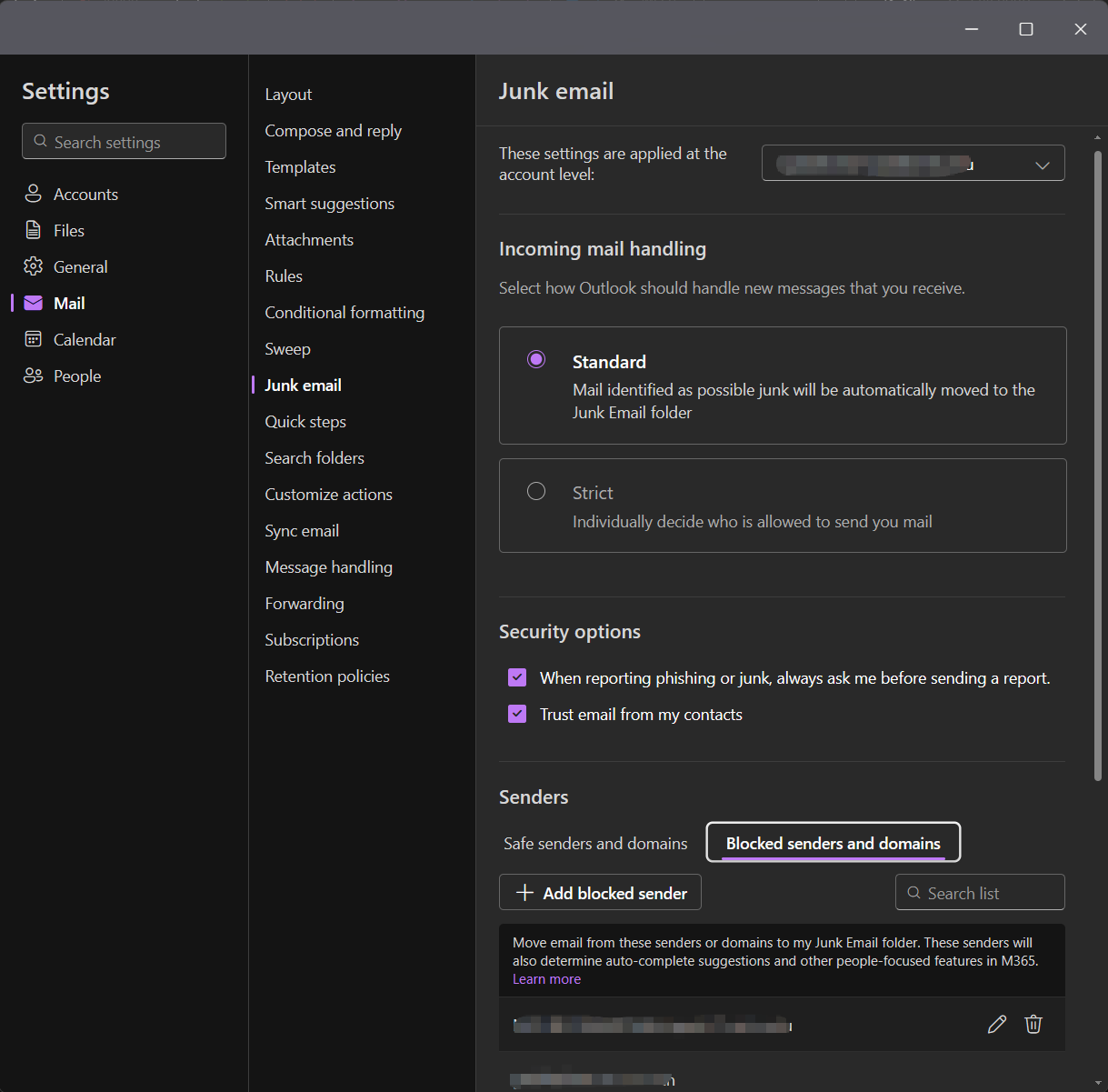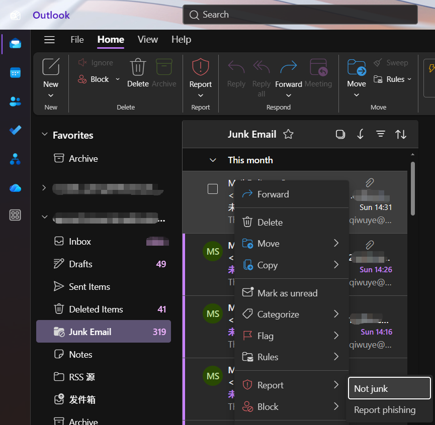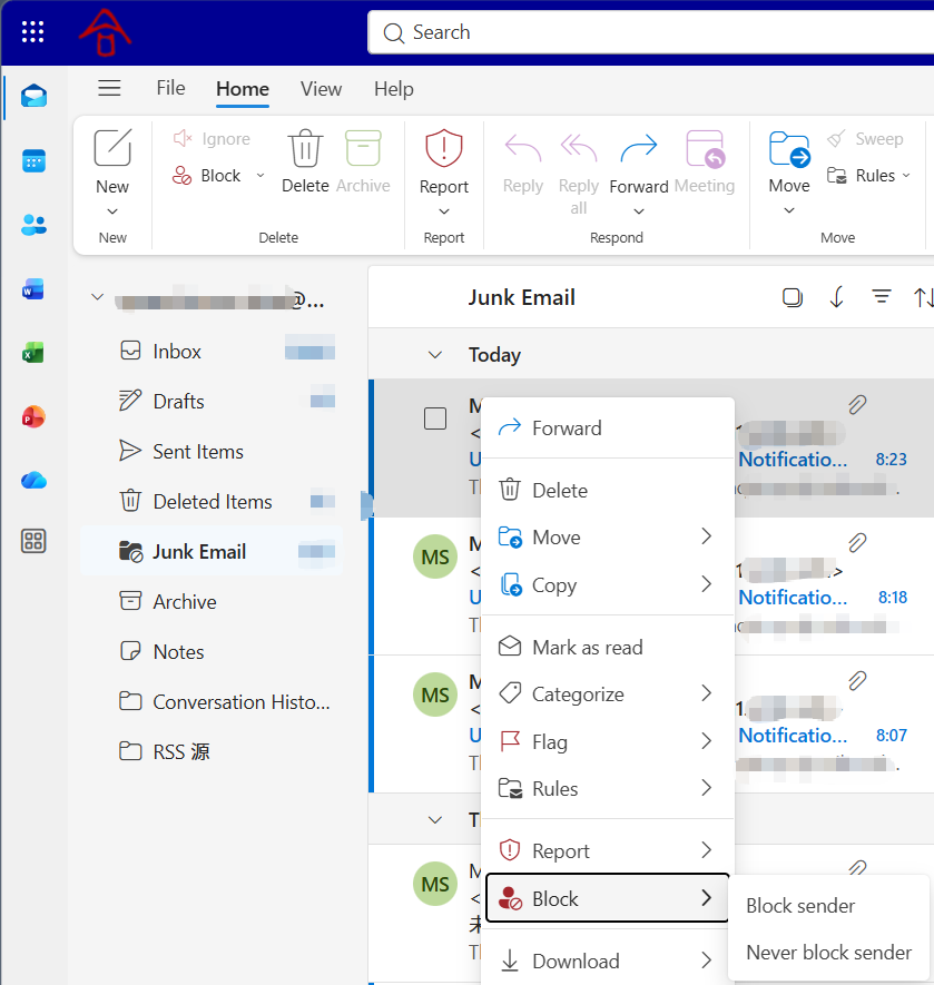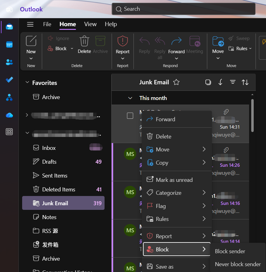 Note: If the block sender function does not take effect, please set it up via the classic Outlook for Windows or Outlook on the web.