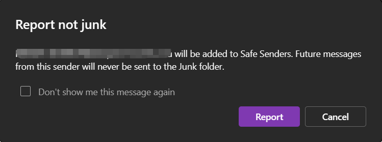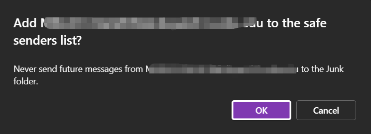 Note: If the unblock sender function does not take effect, please set it up via the classic Outlook for Windows or Outlook on the web.