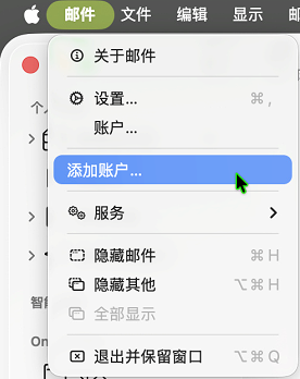 - 如果您以前使用过 邮件 应用,请到顶部菜单栏:选择 邮件 > 添加账户。