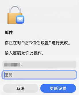 - 提示 输入密码允许此操作,请输入此电脑的开机密码,选择 更新设置。