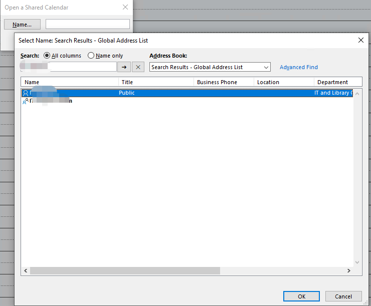 - Enter the name or email address of the person who shared their calendar with you, then click OK.
