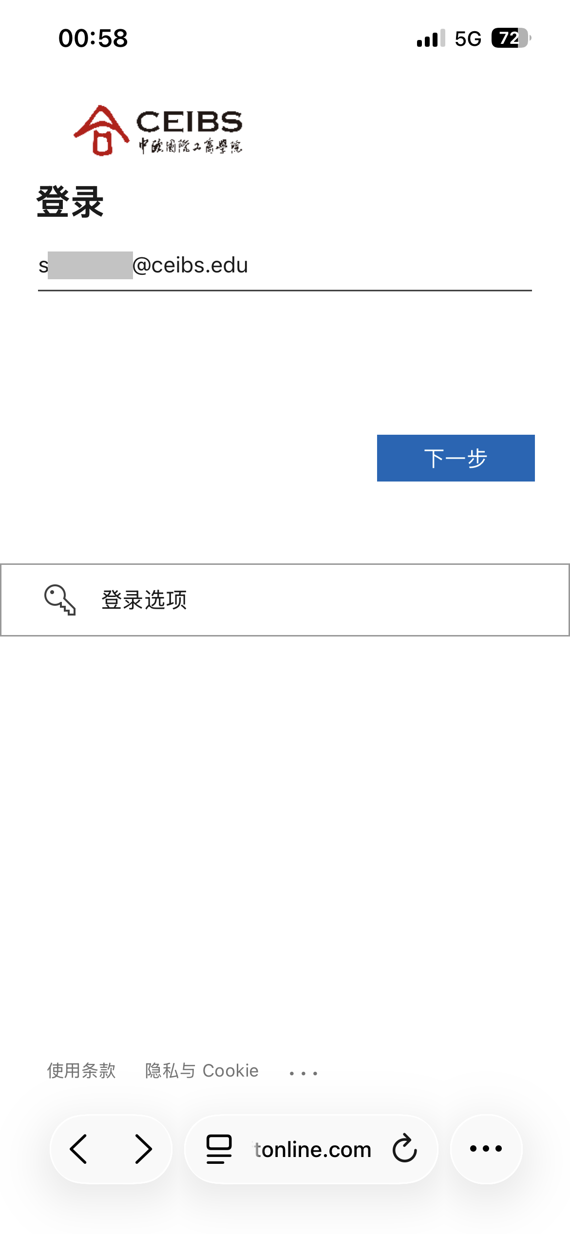 3. 输入公司域名:ceibs,并点击继续